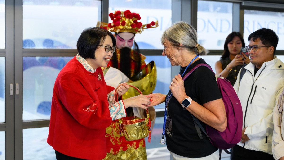 年初一︱「財神爺」降臨郵輪碼頭向旅客派賀年禮物 春節黃金周12個郵輪航次訪港