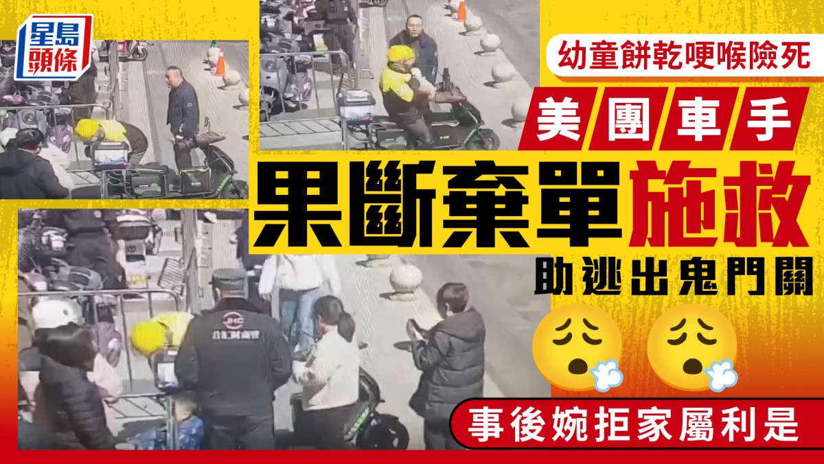 幼童遭餅乾哽喉面色泛紫 美團車手棄單勇救逃鬼門關︱有片