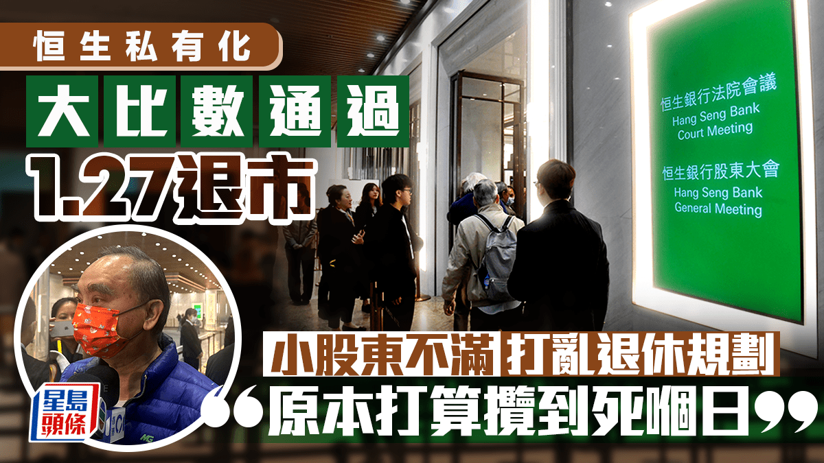 恒生私有化|大比數通過 1.14最後買賣 1.27退市 小股東不滿 「原本打算攬到死嗰日」