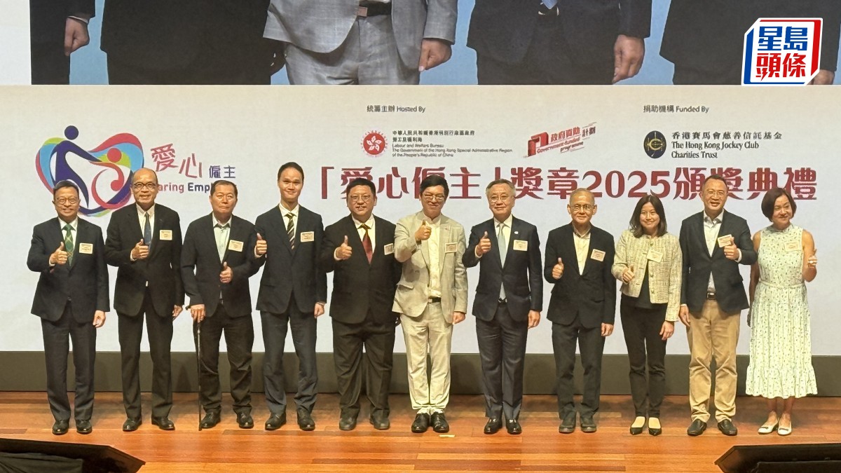 勞工及福利局昨今日(10日)舉辦「愛心僱主」獎章2025頒獎典禮,表揚積極聘請殘疾人士的僱主,以推動職場共融和促進殘疾人士就業,共大185間機構獲獎,其中港鐵公司、香港迪士尼樂園、香港中華煤氣有限公司、東華三院及香港傷健協會等機構,同獲頒「愛心僱主」第三級「殘疾共融先鋒」;馬會期望有更多企業加入,讓共融精神成為企業文化的一部分。