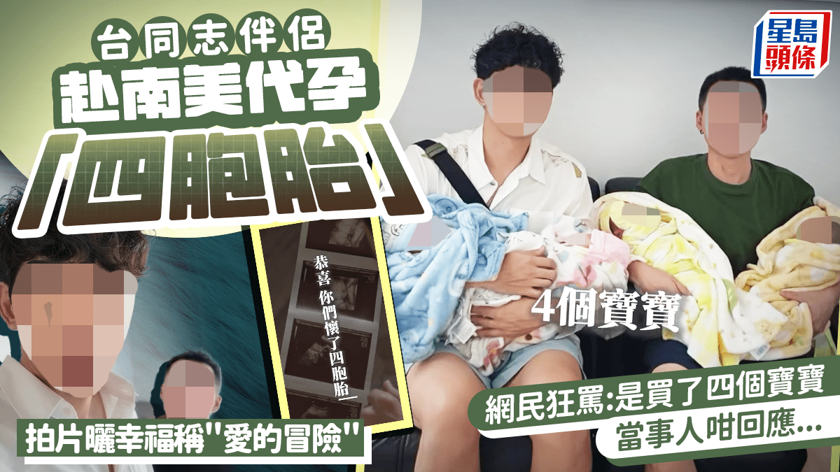 愛的冒險!? 台同志伴侶代孕「四胞胎」 拍片曬幸福 引網民狂罵:是買了四個寶寶