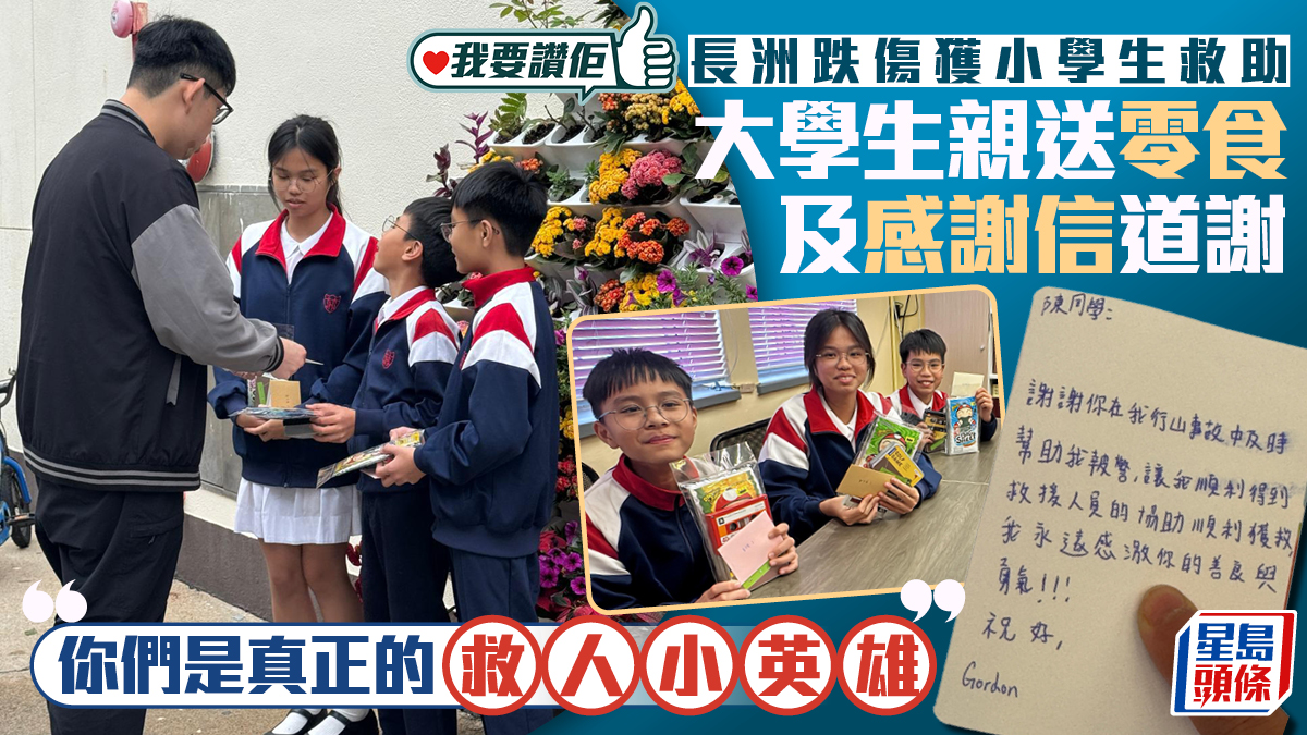 我要讚佢|長洲跌傷大學生向3位小學生道謝 親撰信件:你們是小英雄
