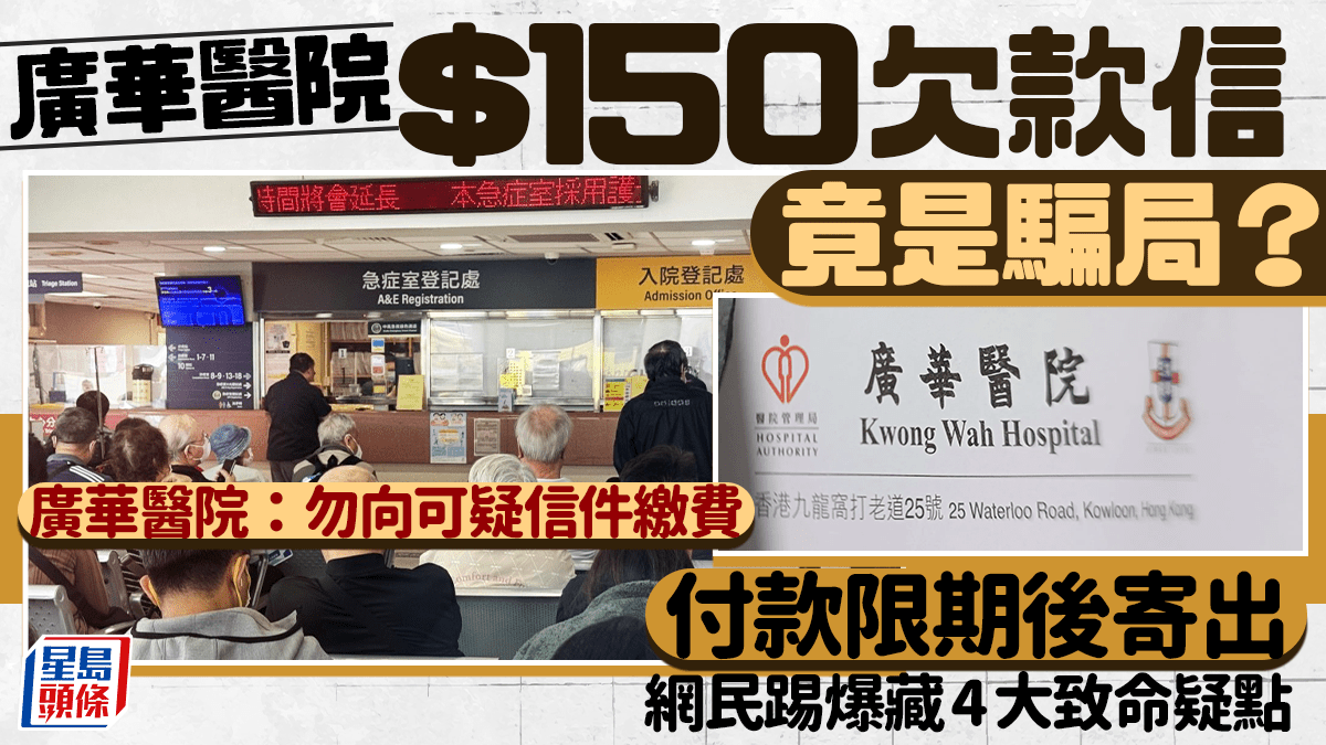 手法升級!廣華醫院$150欠款信竟是騙局?付款限期後寄出藏4大疑點 廣華醫院籲:勿向可疑信件繳費|Juicy叮