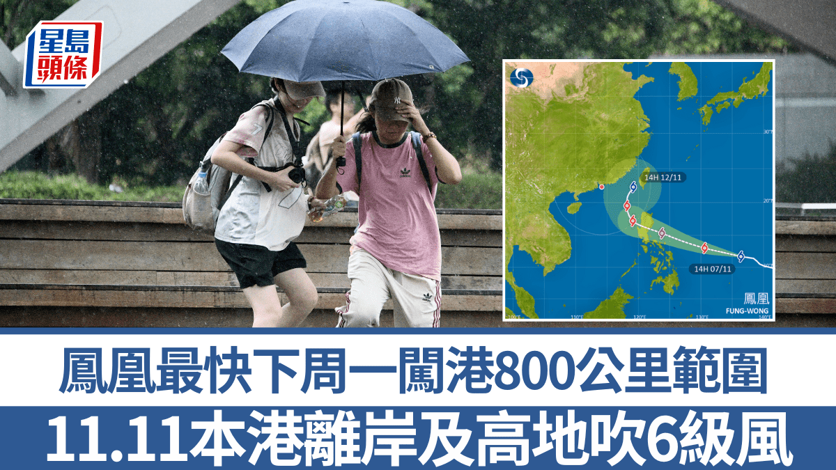 雖然鳳凰對本港直接威脅不大,但天文台預料受受季候風及鳳凰的共同影響,下周中期中國東南沿岸風勢頗大。根據9天天氣預報,鳳凰亦會為香港帶來風雨,在下周二及周三,本港均會有一兩陣陣雨,亦會吹北風4至5級,離岸及高地間中6級,而周三的氣溫亦會進一步下降,跌至21度,周四(11月13日)更跌至20度。