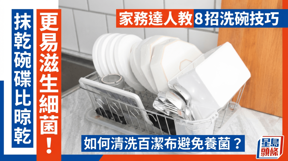 抹乾碗碟比晾乾更易滋生細菌!家務達人教8大正確清潔技巧 百潔布應如何清洗才乾淨?