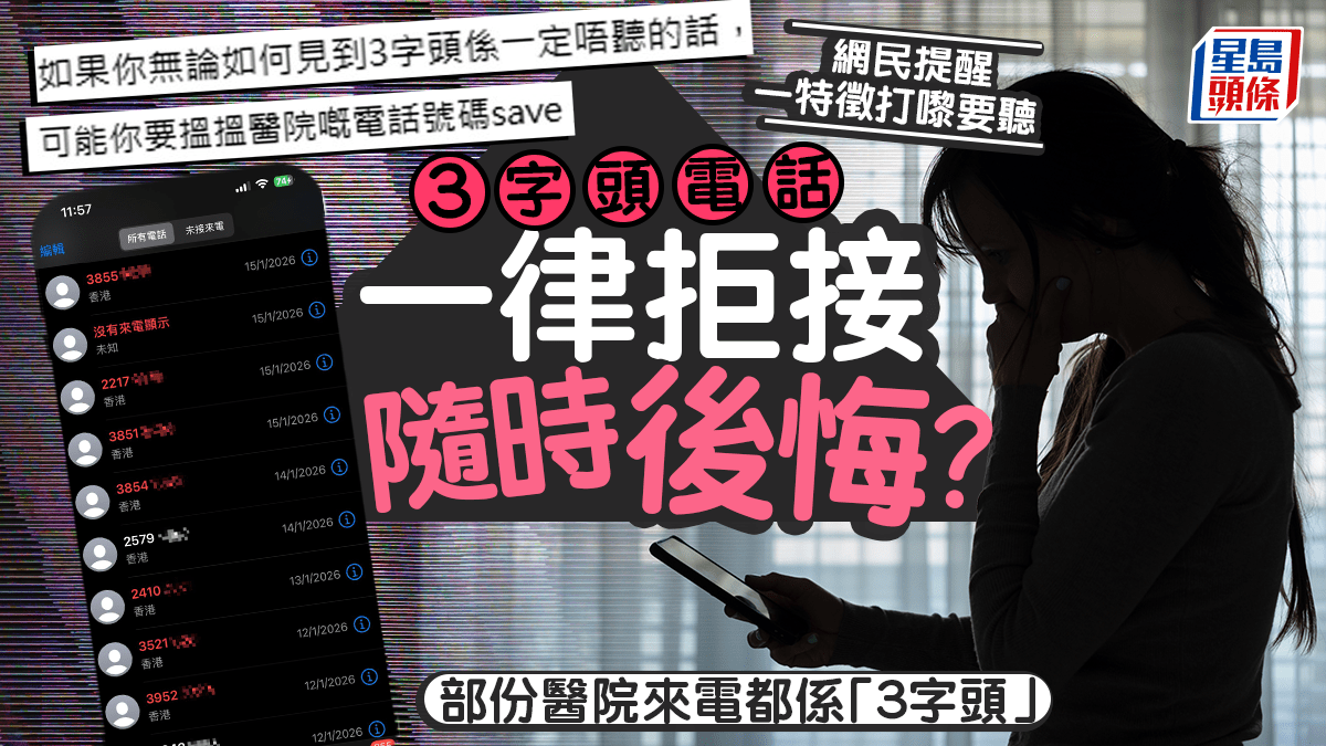拒接3字頭電話隨時後悔?留意醫院來電特定「字頭」 網民提醒勿錯過:連續打嚟就好聽