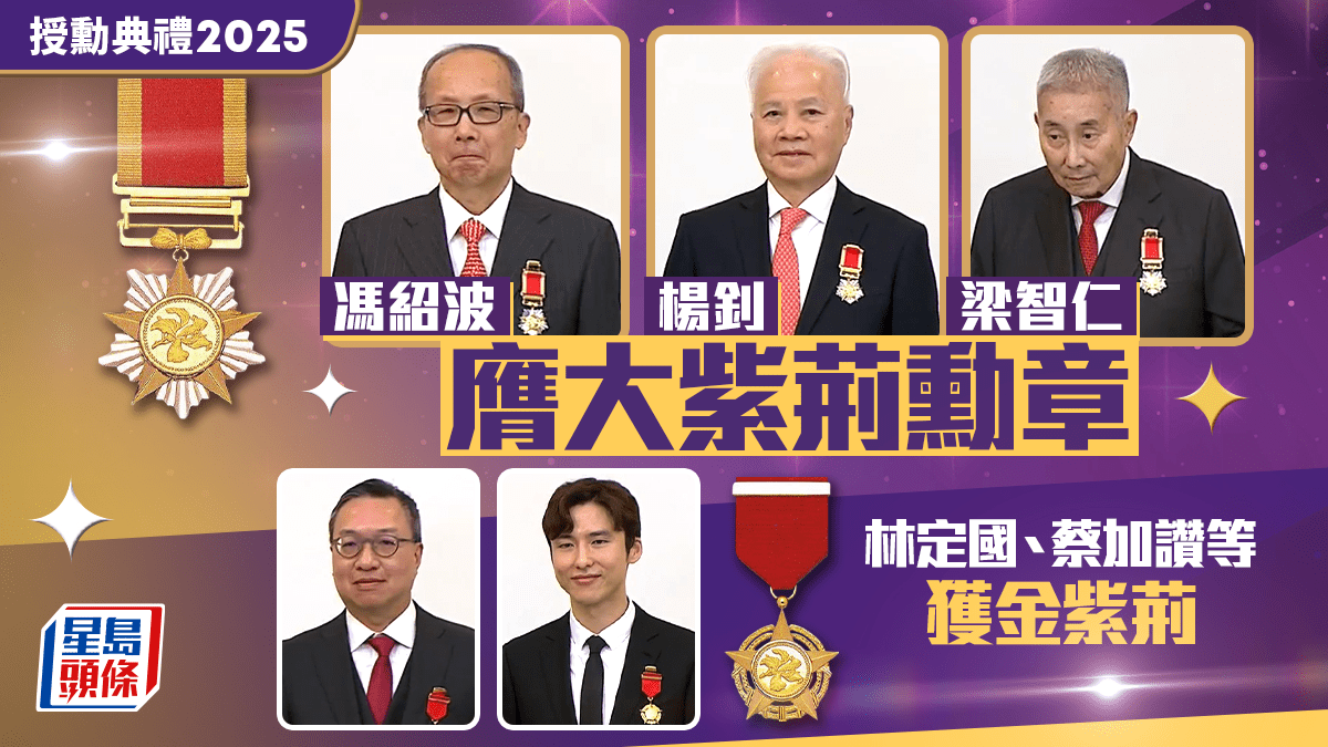 授勳典禮2025︱特首頒授勳銜 馮紹波、楊釗、梁智仁膺大紫荊勳章 林定國、蔡加讚等人獲金紫荊
