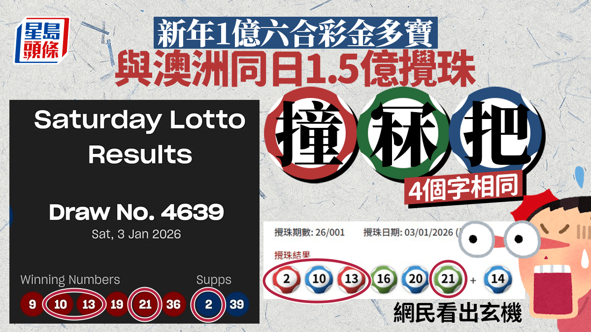 新年1億六合彩金多寶 與澳洲同日1.5億攪珠撞冧把 4個字相同 網民看出玄機|Juicy叮