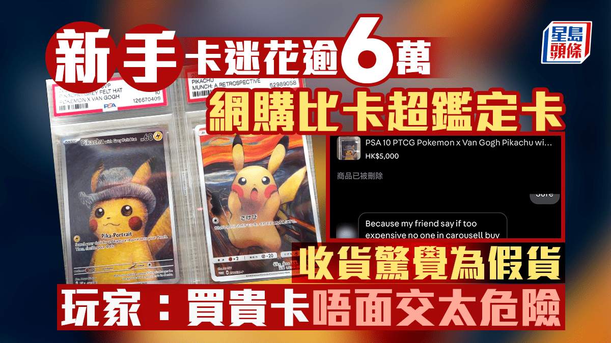 新手卡迷花逾6萬購「比卡超」鑑定卡 收貨驚覺為假貨痛失積蓄 玩家:買貴卡唔面交太危險