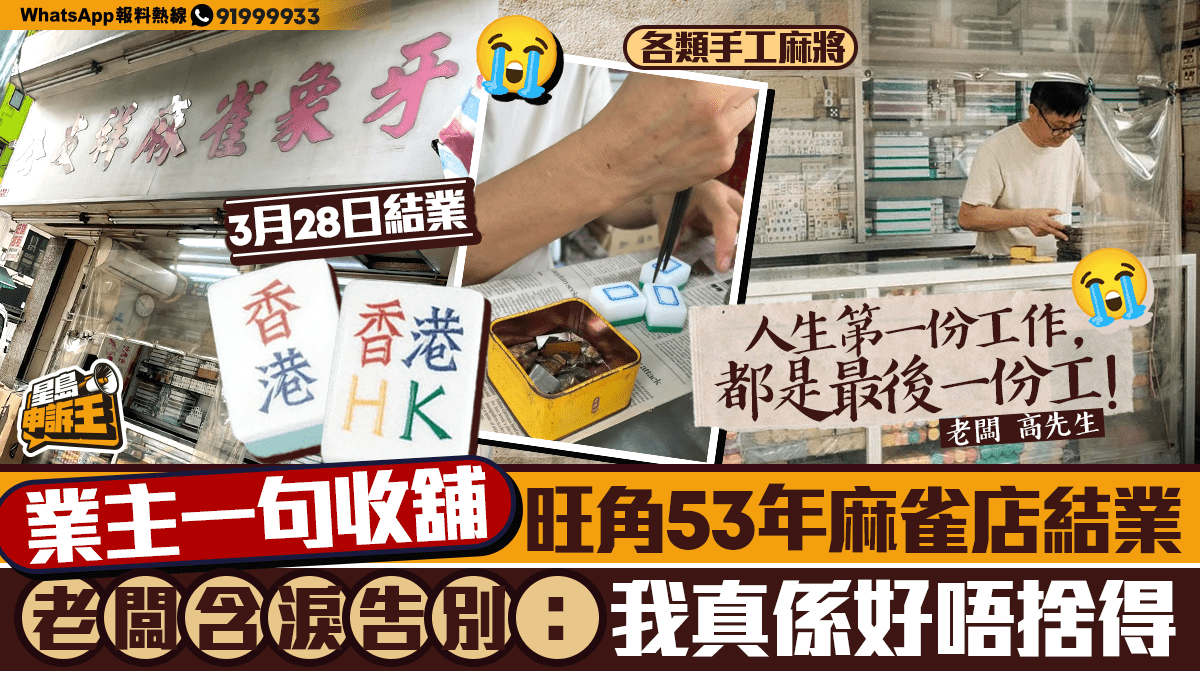 星島申訴王|業主一句收舖 旺角53年麻雀店結業 老闆不捨:全港手工麻雀店又少一間