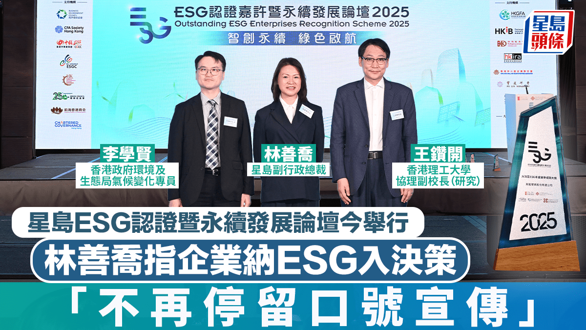 星島副行政總裁林善喬則表示,近年ESG已成全球企業發展不可或缺的一環,各大企業不再停留在口號宣傳上,更將ESG因素納入投資及決策之中,並主動發布ESG報告以提升透明度,做好ESG對於企業在市場中實現穩定發展至關重要,更是推動創新、提升競爭力及建立信任的關鍵。