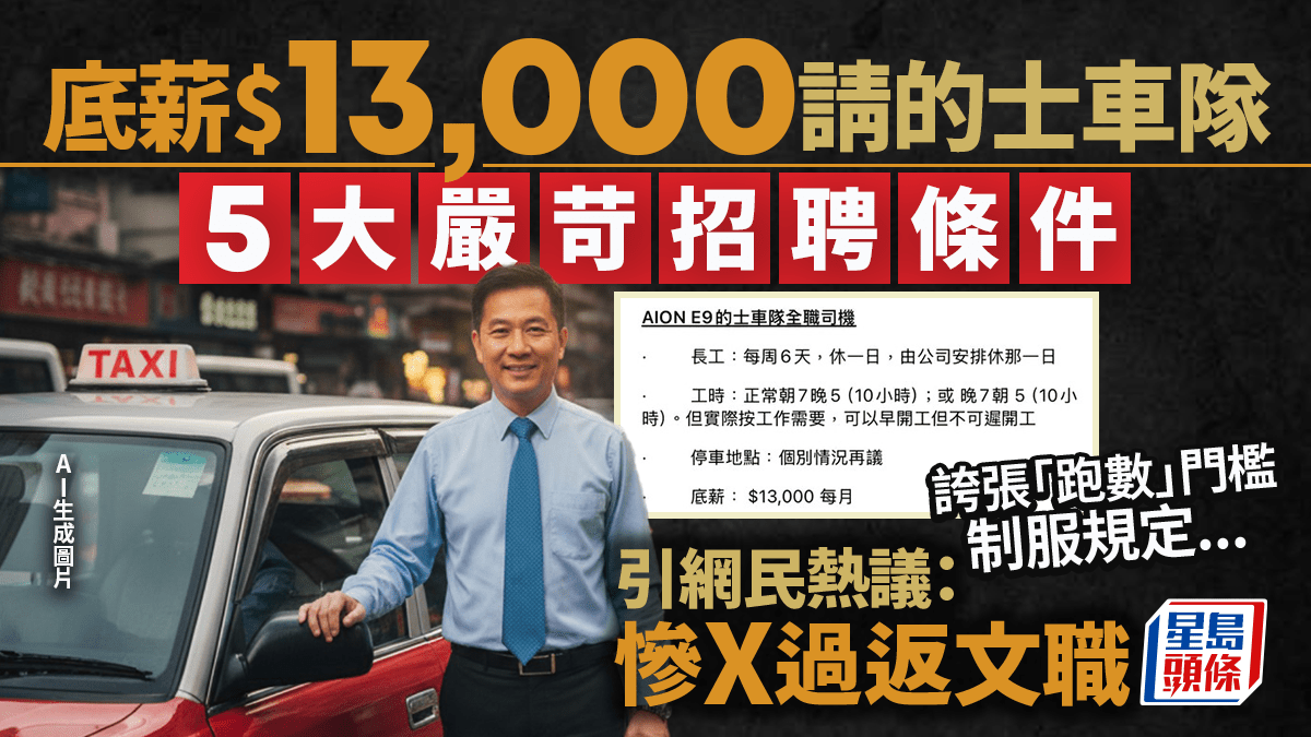 月薪$13,000招聘的士車隊司機 廣告列5大條件引熱議 網民:請唔到又搵外勞