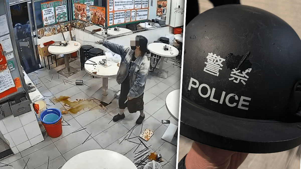 有片|上水牛雜店CCTV片曝光 內地女擸菜刀發狂大叫 刀刀狠勁狂劈警員
