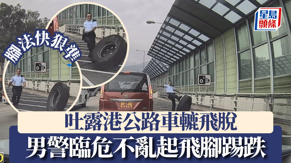 有片|吐露港公路車轆飛脫 男警臨危不亂起飛腳踢跌 網民大讚:快狠準