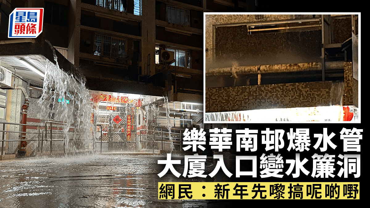 有片|樂華南邨爆水管 大廈入口變「水簾洞」 逾200戶無食水用