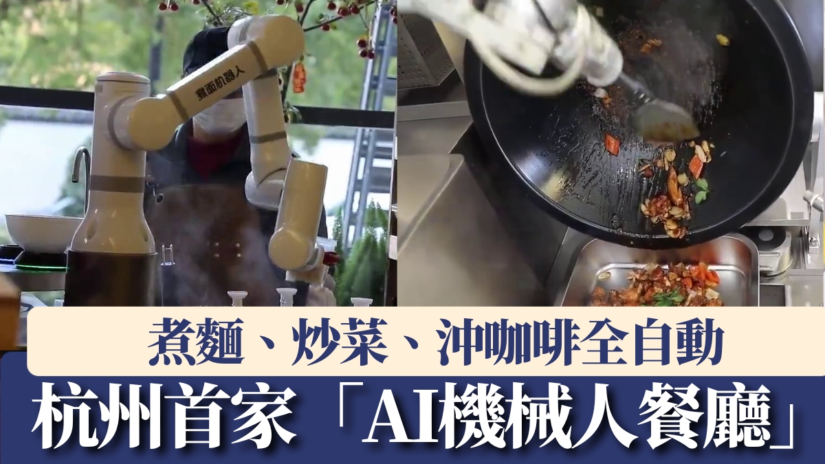 杭州首家「AI機械人餐廳」營業 煮麵、炒菜、沖咖啡全自動