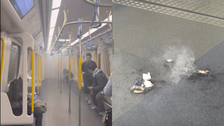 東鐵綫車廂流動充電器冒煙起火 乘客急走避 幸無人受傷|有片