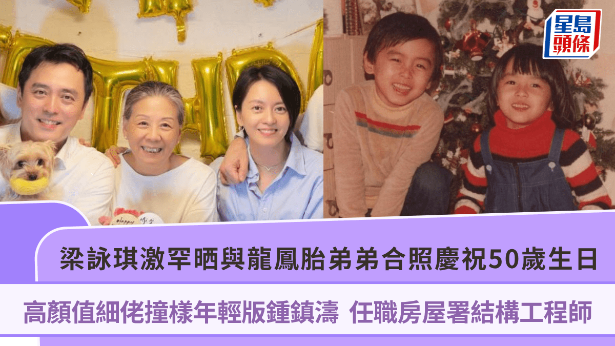 梁詠琪激罕晒與龍鳳胎弟弟合照慶祝50歲生日 高顏值細佬撞樣年輕版鍾鎮濤