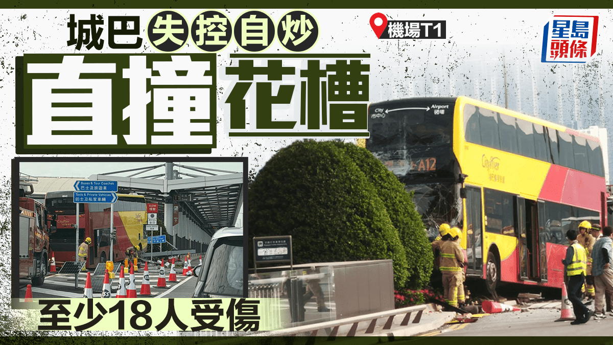 機場城巴直撞花槽釀18傷 64歲男司機涉危駕被捕
