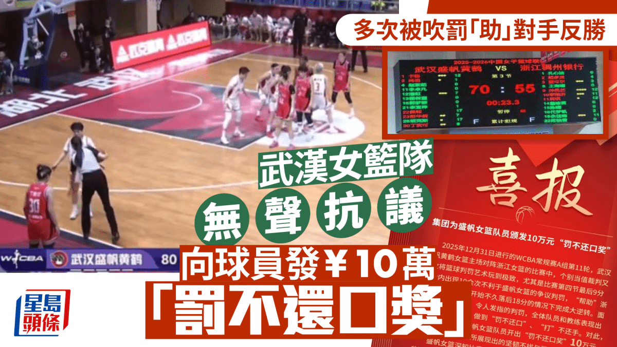 武漢女子籃球隊抗議「黑哨」 發¥10萬「罰不還口獎」