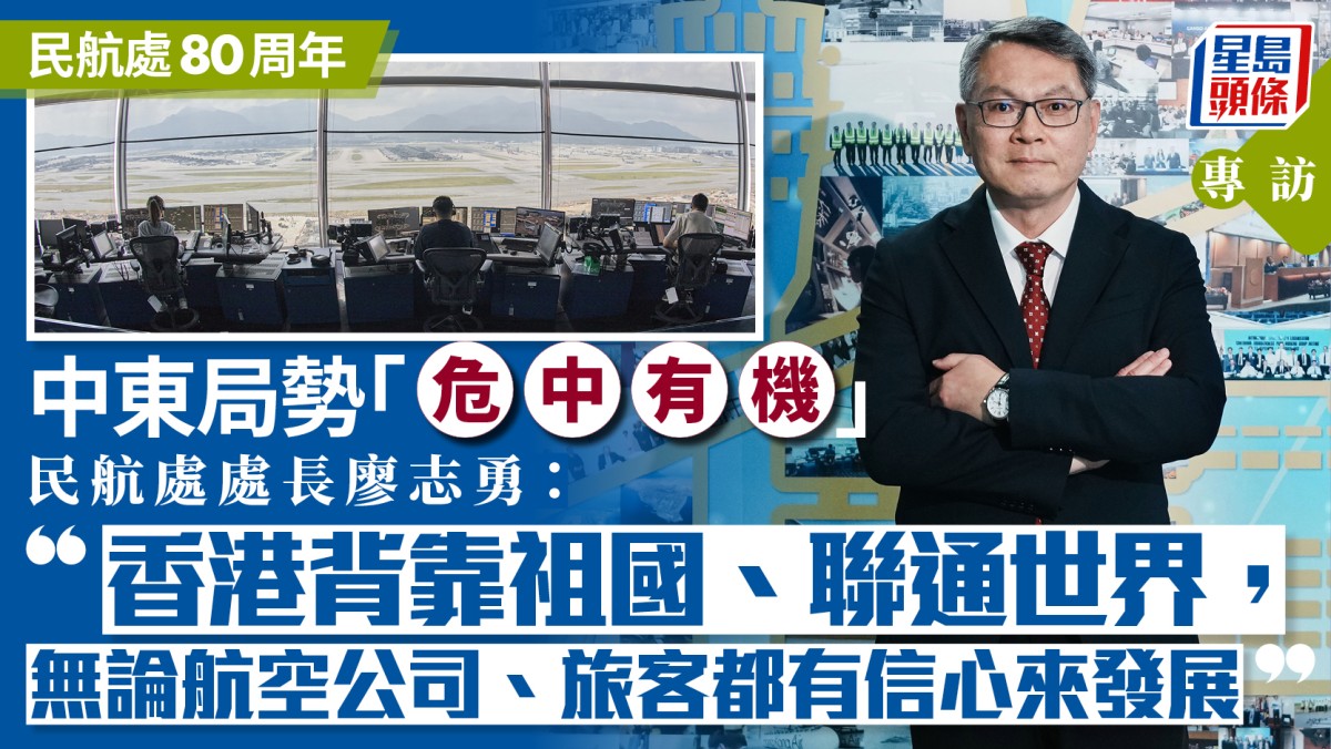 今年是民航處成立80周年,民航處處長廖志勇接受《星島》專訪時表示,部門將繼續精益求精,為本港提供安全、有效率及可持續發展的航空交通運輸系統,並且擔當亞太區乃至全球航空監管機構其中一位領導者的角色。他又形容,中東局勢「危中有機」,「可肯定的是,戰爭帶來不穩定性,沒有戰爭的地方,人們覺得更加穩定。香港背靠祖國、聯通世界,有穩定的經濟、環境,這是一個基礎,無論航空公司、旅客,都有信心來這裏發展。」 難