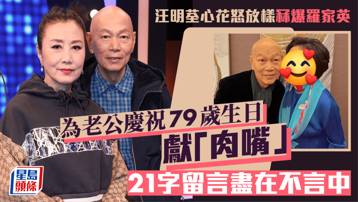 自從羅家英四度患癌的消息曝光後,引來不少網民擔心,再加上羅家英曾在訪問談及病況時,自爆與老婆汪明荃的家事,掀起網民討論。不過夫婦二人先後經歷過不少人生考驗,汪明荃未有因此而動怒,昨日(12日)在IG貼上為老公慶祝的相片,其中一張見到汪明荃獻「肉嘴」。
