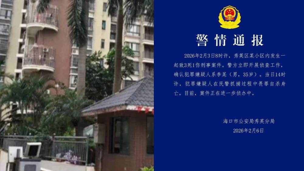 海口發生致3死1傷兇殺案 35歲男疑犯畏罪自殺亡