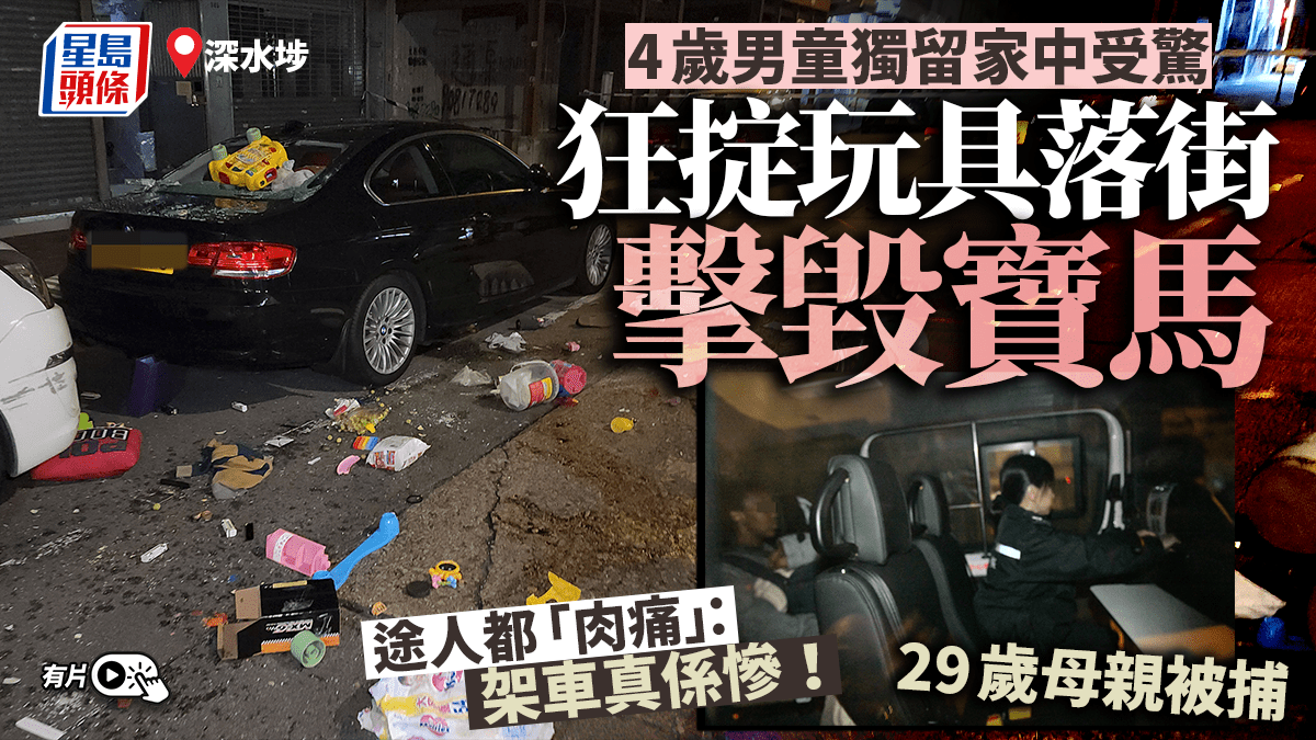 深水埗非籍男童疑獨留家中 狂掟玩具落街擊毀寶馬 母親被捕