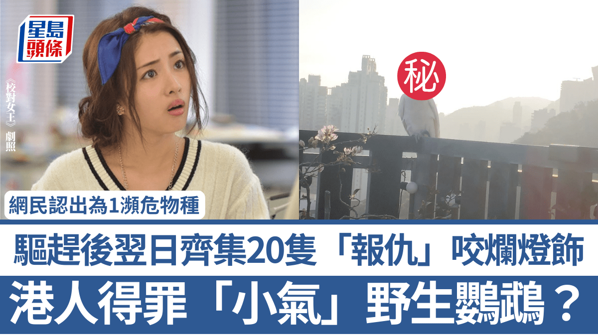 港人得罪「小氣」野生鸚鵡?驅趕後翌日齊集20隻「報仇」咬爛燈飾 網民認出為1瀕危物種:全球僅剩二千隻