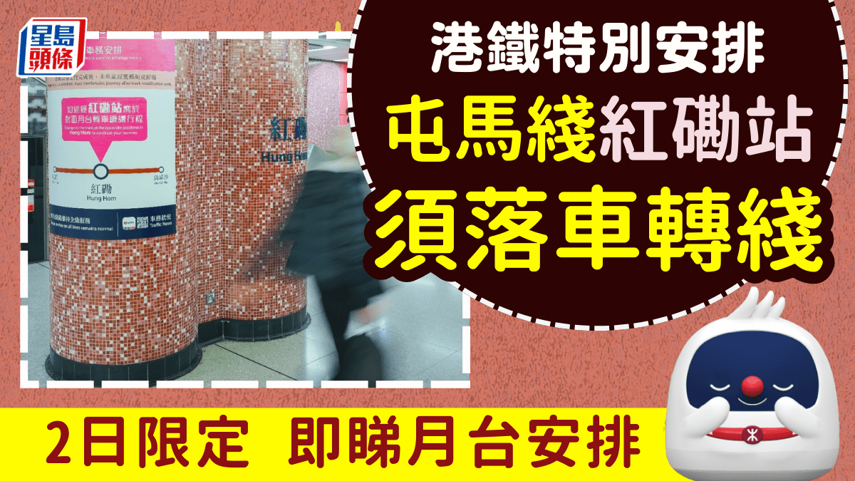 港鐵屯馬綫紅磡站特別安排!指定日子需落車轉月台