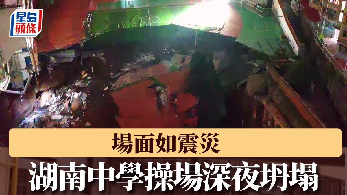 湖南邵陽市資江學校的圍牆以及操場周五(17日)晚上發生坍塌,暫無人員傷亡報告。