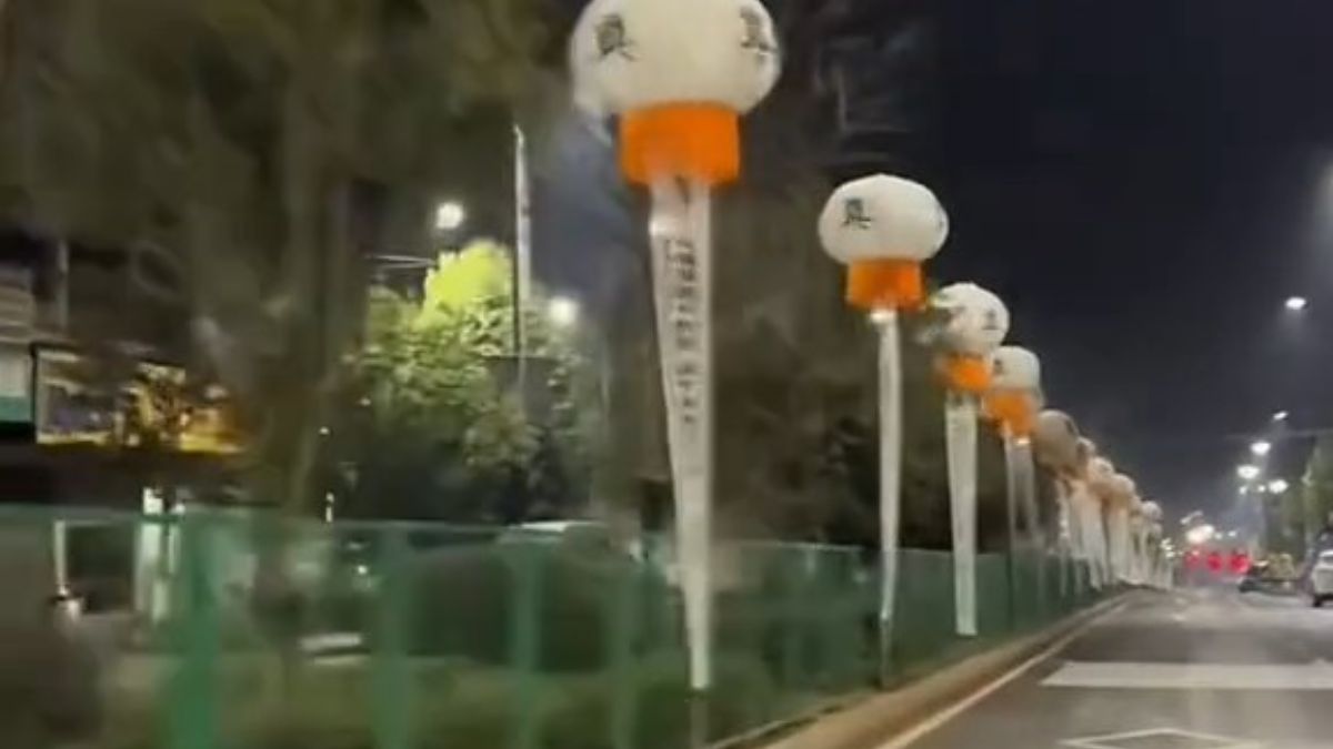 湖南長街現2米高「奠」燈籠 網民:全縣放假三天陪著哭