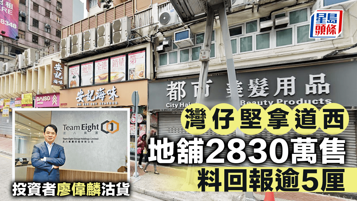 灣仔堅拿道西地舖2830萬售 投資者廖偉麟沽貨 料回報逾5厘