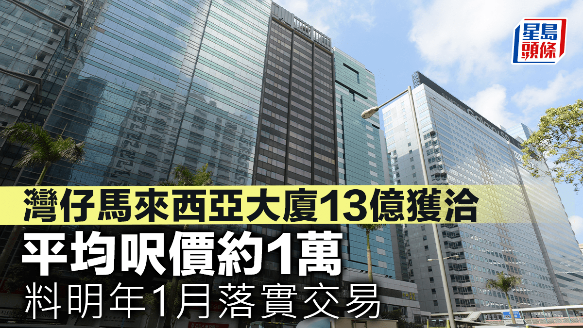 灣仔馬來西亞大廈13億獲洽 平均呎價約1萬 料明年1月落實交易
