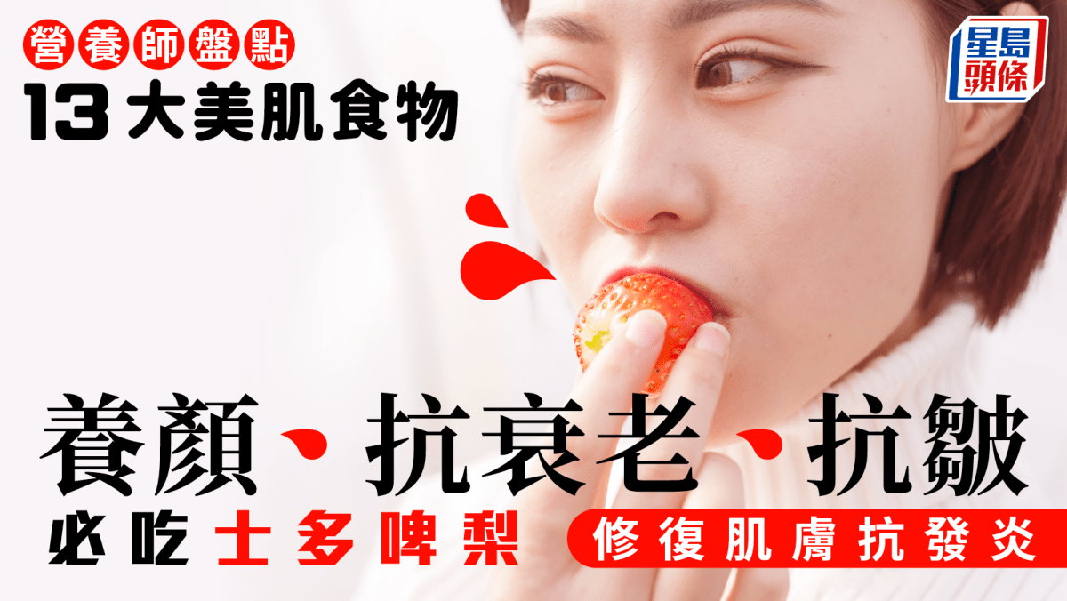 營養師盤點13大美肌食物 養顏/抗衰老/抗皺淡紋 必吃士多啤梨修復肌膚抗發炎