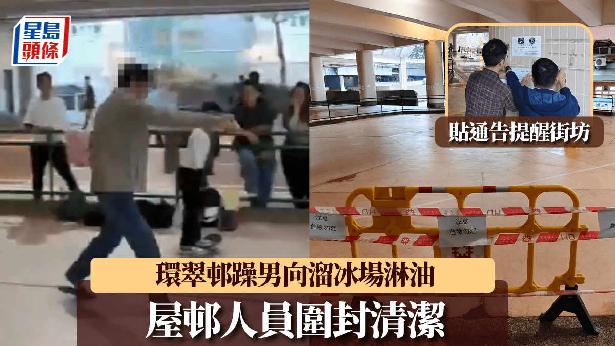 環翠邨溜冰場遭淋油|屋邨人員圍封清潔 貼通告籲勿滑板 注意清潔及聲量