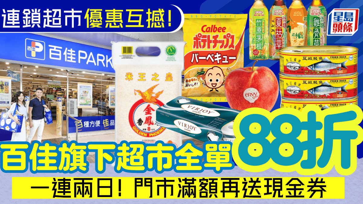 百佳超級市場快閃優惠!一連兩日門市/網店全單88折 買滿$150即送$15現金券