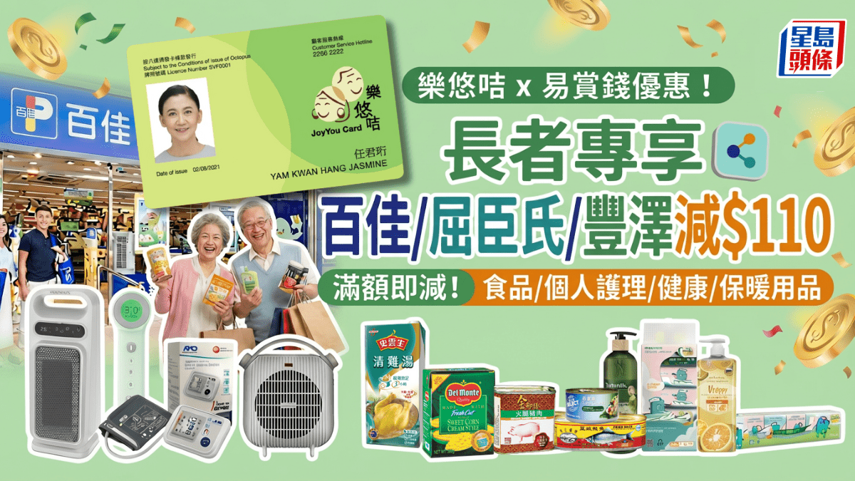 百佳/屈臣氏/豐澤長者優惠!樂悠咭專享慳足$110 食品/護理用品/健康/保暖用品都有得減