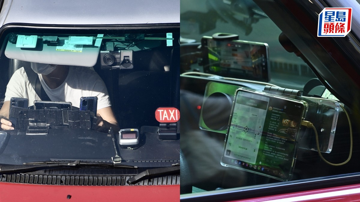【的士/的士司機/手機陣/接單】運輸署今日(25日)起,規定司機駕駛時最多只可以使用兩部流動通訊設備,顯示屏對角長度不可大於19厘米(約7.48吋),設備不可影響或阻礙行車視線。《星島頭條》記者今午在紅磡過海的士站逗留約半小時,四五十部的士中,目測絕大部分司機均遵從法例,僅有一名司機車頭放置兩部手機和一部平板電腦,涉嫌違規。不過,「上有政策、下有對策」,現場所見不少司機都「變陣」,以平板電腦或摺疊