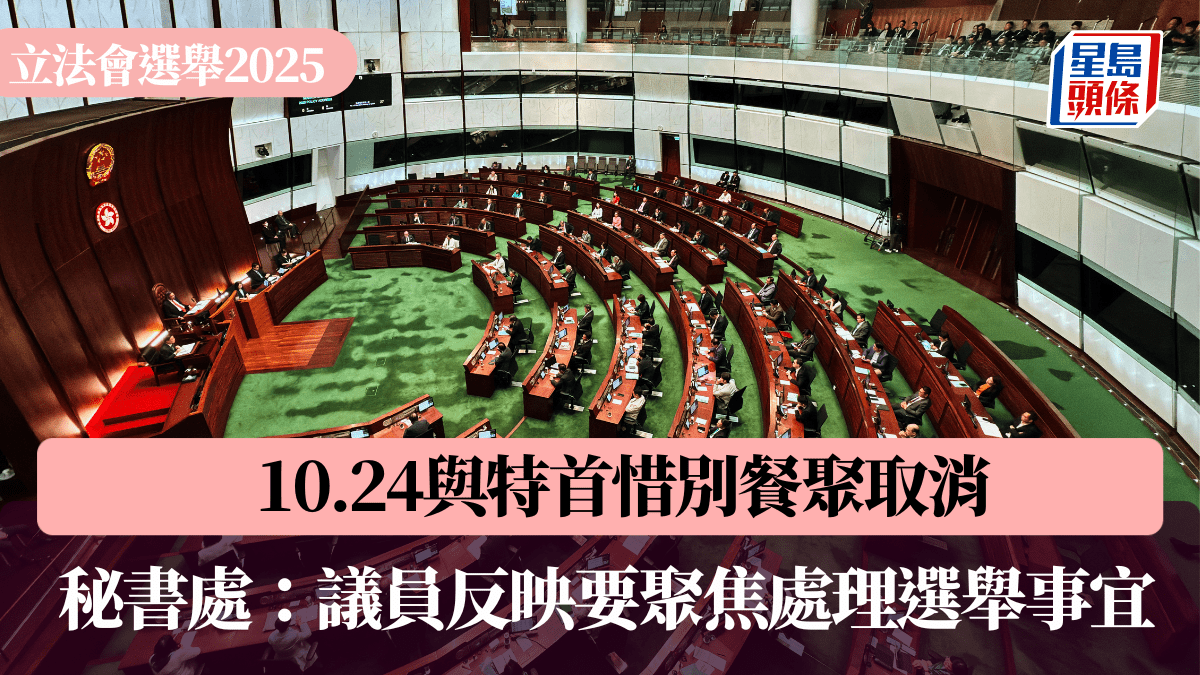秘書處指,近日有不同議員向立法會主席反映,由於新一屆立法會選舉提名期即將於下周五(10月24日)開始,許多議員現時都希望可聚焦處理選舉事宜。由於有關午宴原已邀請行政長官出席,故在通知行政長官辦公室並得到他們理解後,主席決定不舉行有關的午宴。