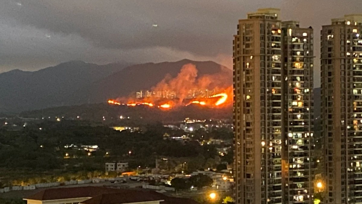 粉嶺坪輋起山火 百米火龍遠至深圳可見