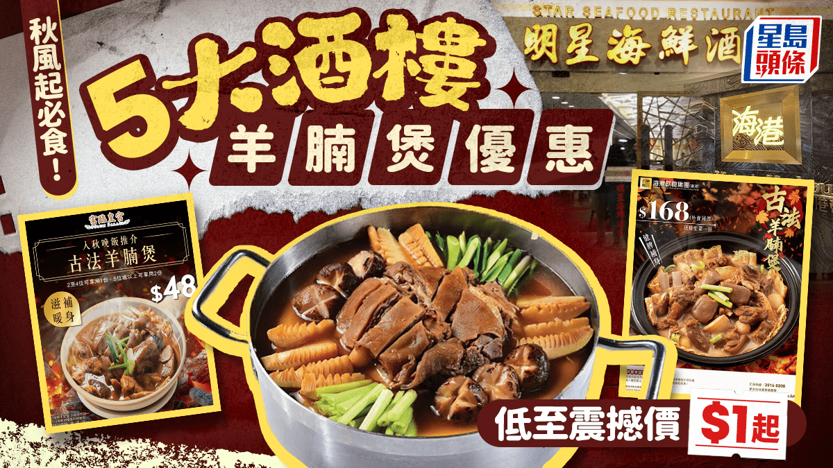 羊腩煲2025推介|秋風起,天氣漸涼,正是品嚐羊腩煲的好時節。羊腩煲不僅暖身,更充滿傳統風味。不同酒樓紛紛推出羊腩煲,海港有古法羊腩煲、富臨皇宮的羊腩煲低至$48、明星海鮮酒家亦推出雙冬枝竹羊腩煲吸客、紅樓更是推出超吸引的$1加購優惠!即睇5大酒樓2025年羊腩煲詳情。