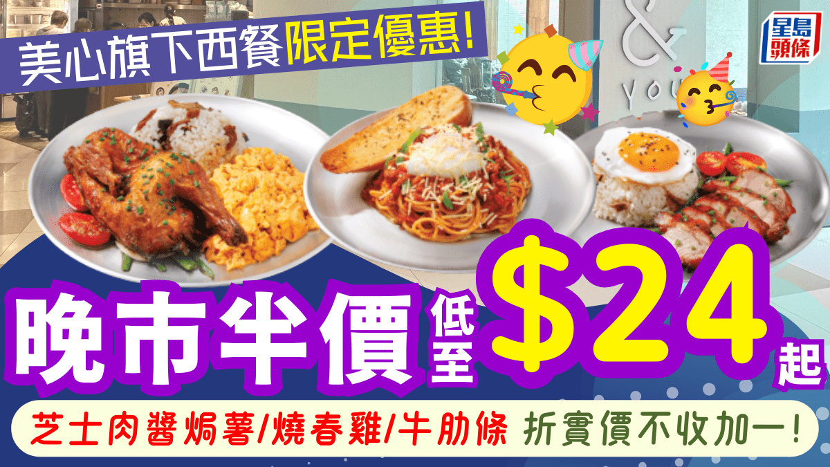 美心旗下& you晚市全單半價!$24起歎芝士肉醬焗薯/脆皮燒春雞/紅酒燴牛肋條