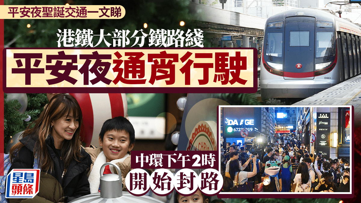 聖誕交通一文睇|平安夜下午2時中環開始封路 港鐵加強服務 大部分鐵路綫通宵行駛