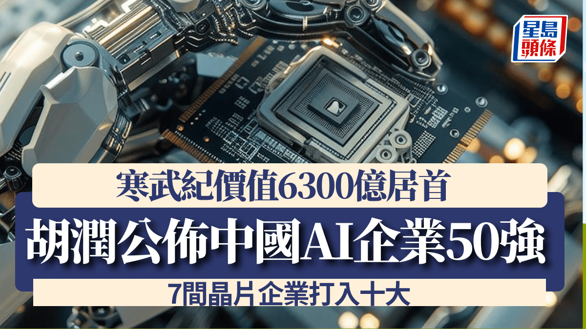 胡潤公佈中國AI企業50強 寒武紀價值6300億居首 7間晶片企業打入十大