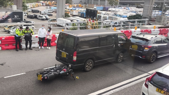 荃灣路3車相撞 鐵騎士倒地 私家車司機同受傷