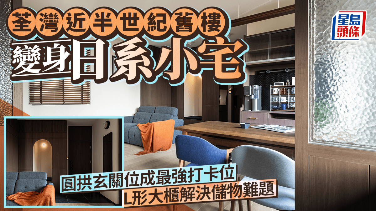 荃灣近半世紀舊樓變身日系小宅 圓拱玄關位成最強打卡位 L形大櫃解決儲物難題