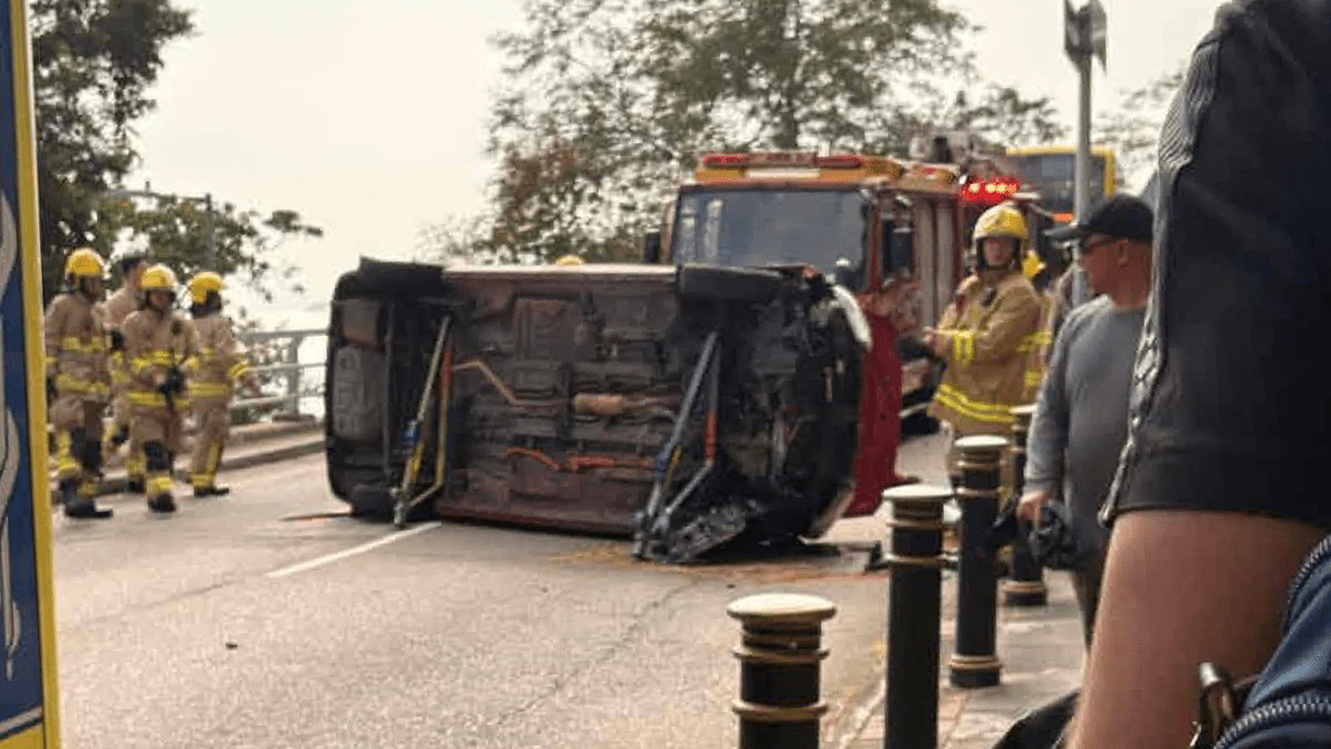 薄扶林的士自炒撞欄翻側 司機乘客一度被困受傷