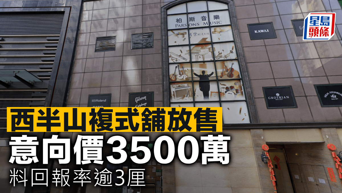 西半山般咸道20至22號百合苑3層高巨舖,意向價3500萬。