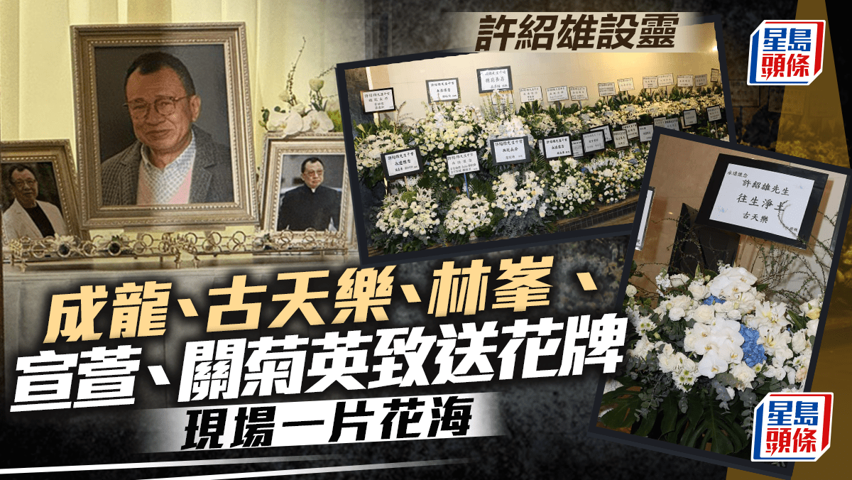 許紹雄設靈|成龍、鄭少秋、古天樂、林峯、關菊英致送花牌 現場一片花海